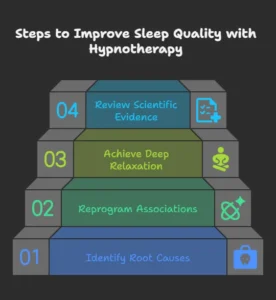 • Therapeutic suggestions – once relaxed, the therapist introduces positive ideas such as “you feel safe and calm at bedtime” or “your mind slows down at night.”